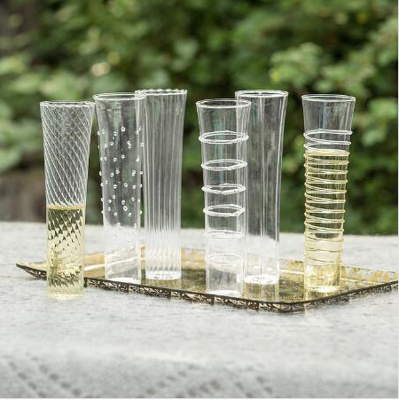 Tall, perfectly shaped and delightfully patterned champagne flutes offer a festive vibe for entertaining. Get ready to celebrate… go ahead and place on a festive tray with fresh flowers, pine…
