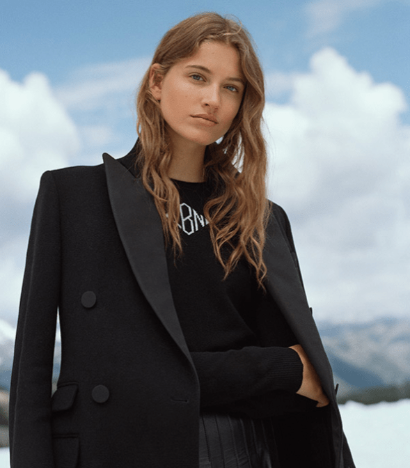 An updated tuxedo coat sets the tone. Layering in style carries a significant impact. Complement the tuxedo coat with a black monogrammed sweater and pleated charcoal pants to bring the outfit to the next level. Classic black leather boots complete the look. RalphLauren.com