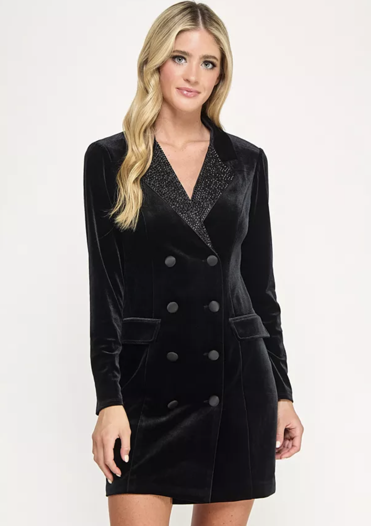 The traditional tuxedo dress dazzles with a slight edge. Tux styling turns the corner in this beautifully shaped black, double breasted velvet dress, with a satin lapel featuring delicate stones, satin buttons and flap pockets. An elegant choice for holidays. Adding tasteful jewelry and a stylish ankle boot makes a statement. For a holiday party, add pizzaz with lace tights or glitter tights. Macys.com