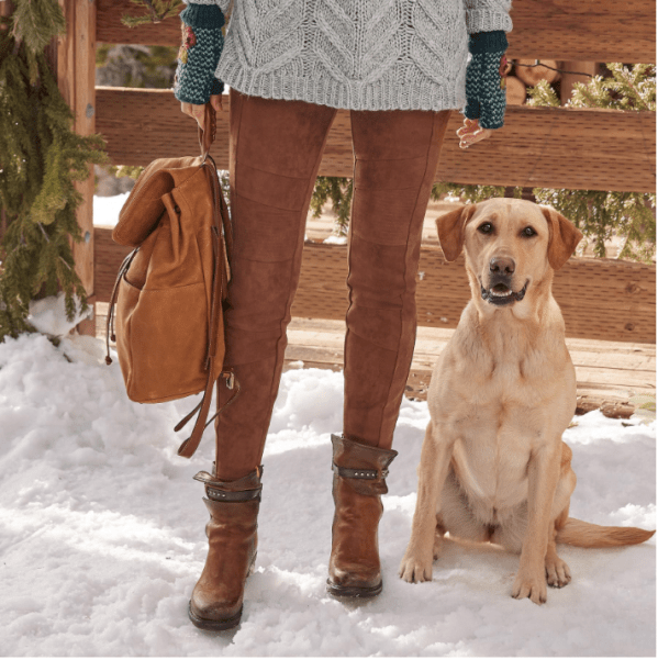 These leggings caught my eye. The soft fabric feels like suede and they’re constructed like jodhpur riding pants. Constructed with a finished waist and side zipper, side ankle zippers and…
