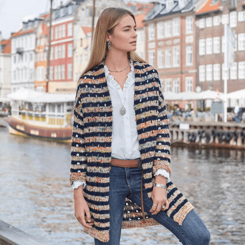 An exclusive from Sundance. Combining texture, detail and a smart stripe adds up to an attractive cardigan for almost any excursion. Shawl collar, marled yarn. Acrylic, wool, Alpaca, mohair. Machine…