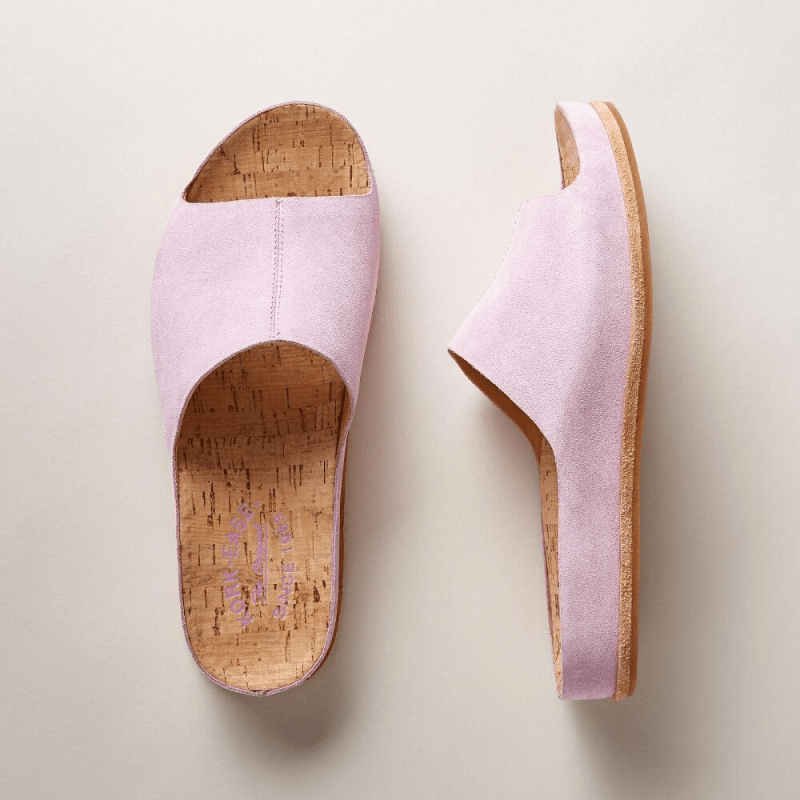 Slide into pure comfort with these cork cushioned contoured soles, and wrap around suede uppers. The Tutsi Slides are made by the Kork-Ease brand, around since 1953. Several colors in…