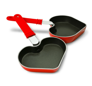 A set of two red mini heart shaped pans are designed to sweeten the day, or night. Heats evenly, easy to clean, red silicone handles stay cool while you create…