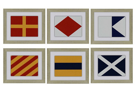 Add a graphic touch, show your sporting side, or simply decorate. Six nautical flag prints are framed in wood molding with an aged silver finish. Arrange horizontally or vertically. Size…