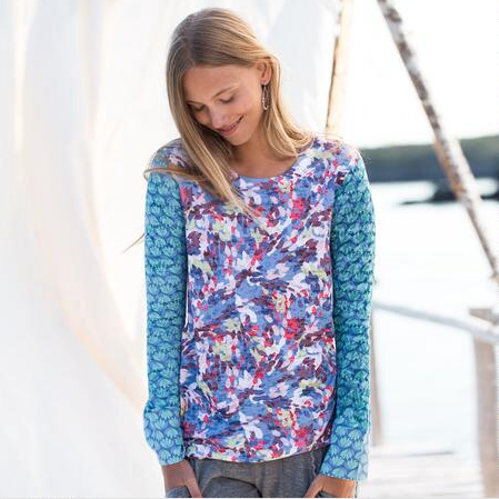Wear art! An impressionist look is achieved with the technique “sublimation.” Each item is created individually and is truly one of a kind. Before printing, the garment is randomly twisted…