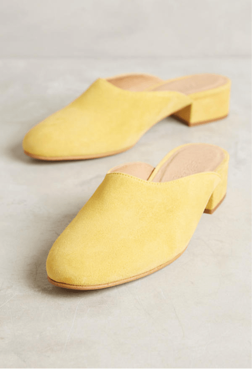 Rich shades of yellow are on trend for the upcoming spring! A pair of suede mules slip on easily for just about any occasion. Perfect for a long day that…