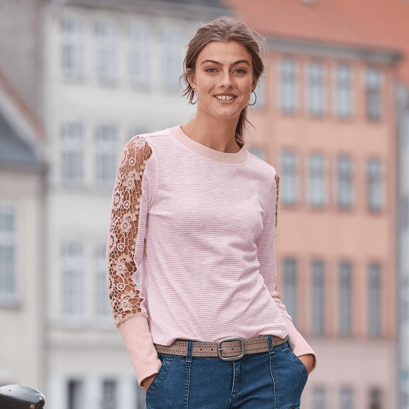 “I did it my way…” The My Way tee pairs lace and stripes for those of us who like feminine and sporty in one soft, long sleeved tee. Long ribbed…